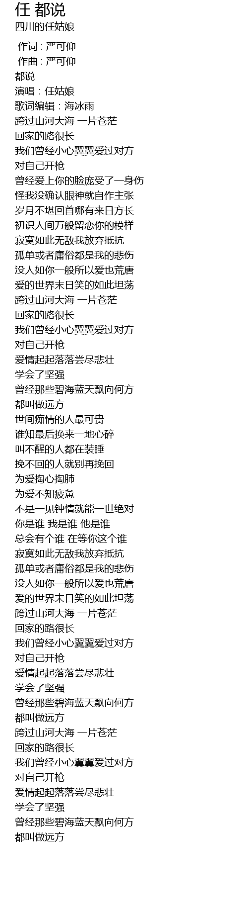 | [00:00.000] | 演唱:任姑娘 |