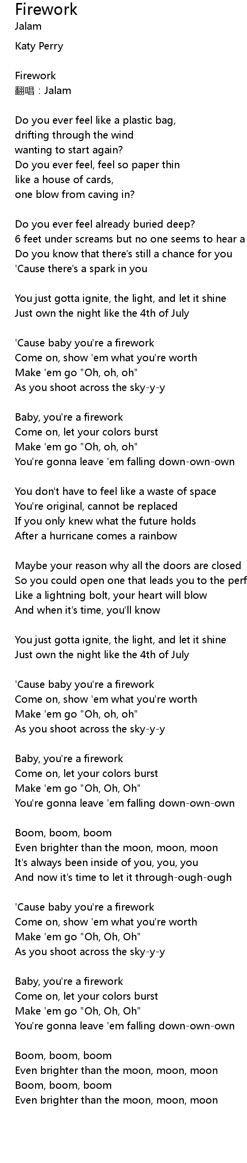 | Baby, you' re a firework | |