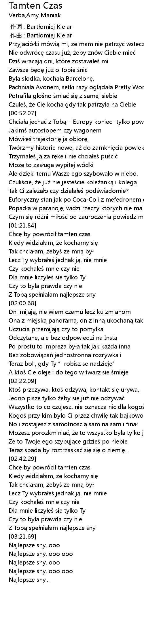 | [03:16.36] | Z Tobą spełniałam najlepsze sny |