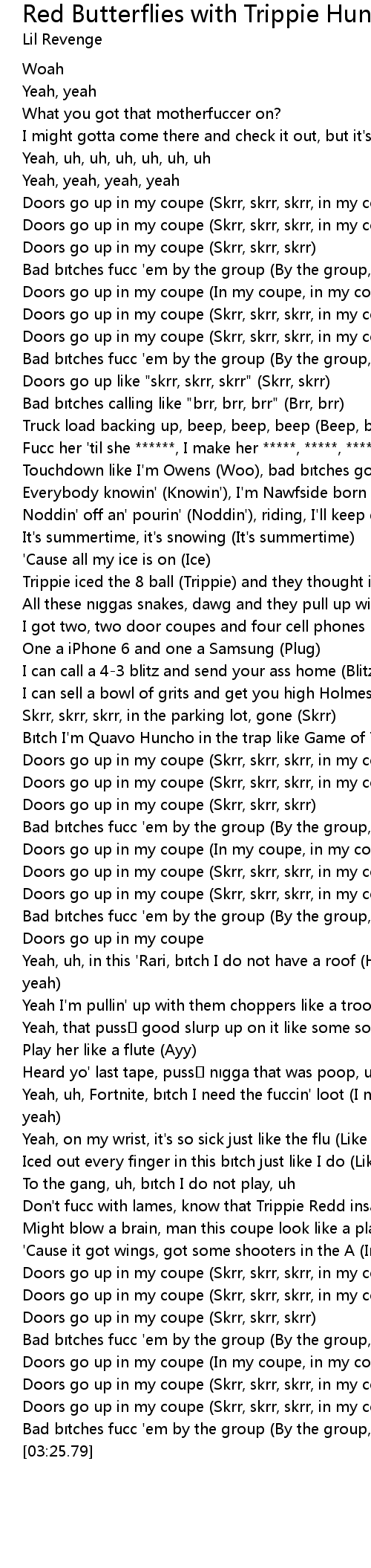 | [02:46.04] | Don' t fucc with lames, know that Trippie Redd insane I' m insane |