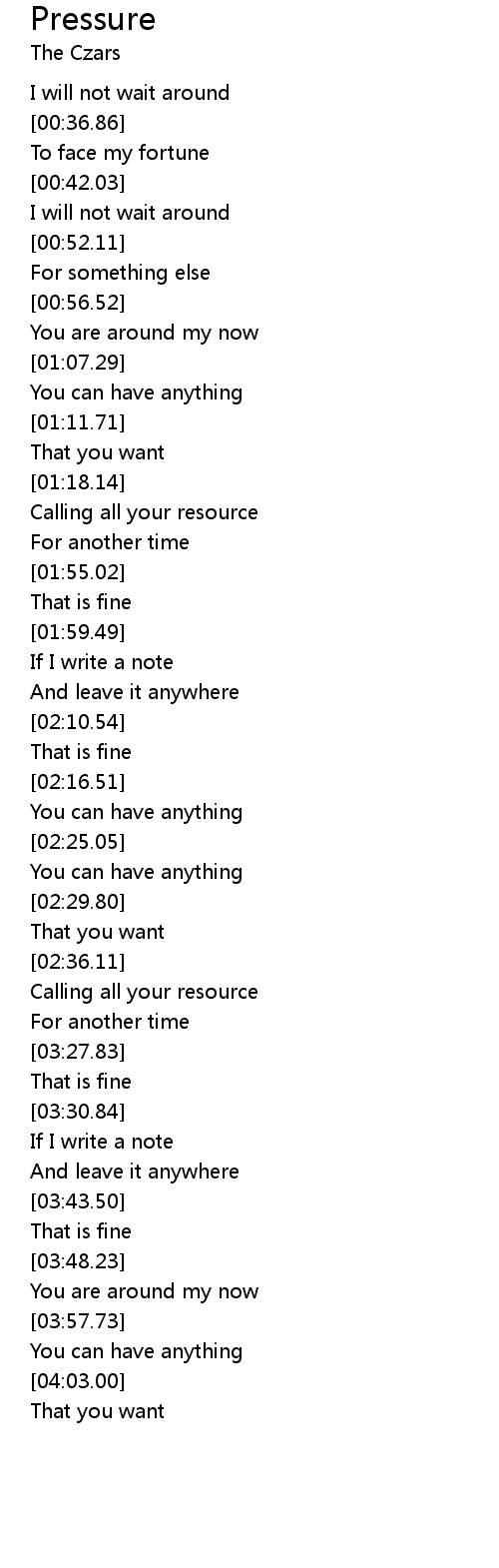 | Song | Pressure |