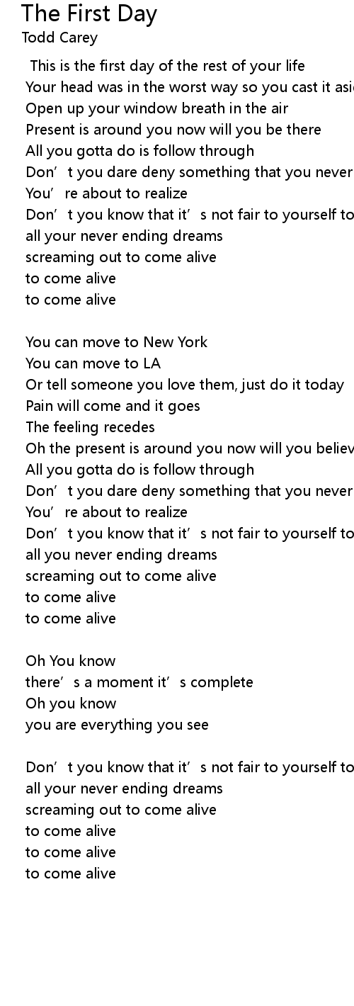 | This is the first day of the rest of your life | |