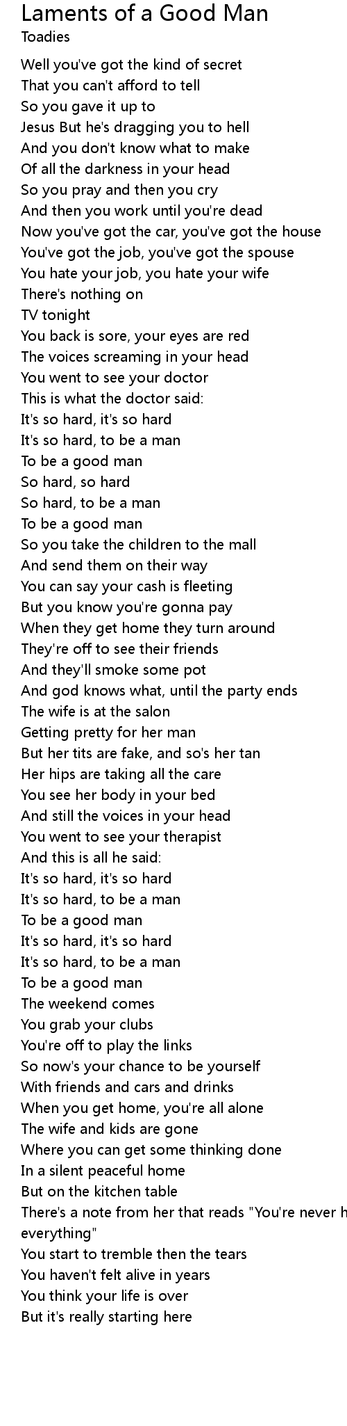 Song Laments of a Good Man