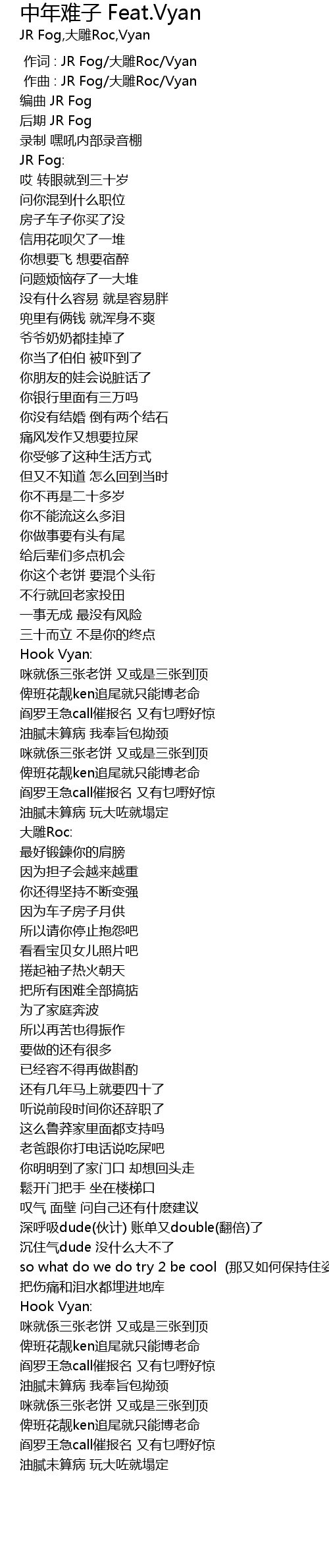 | [00:00.000] | 作词 : JR Fog/大雕Roc/Vyan |