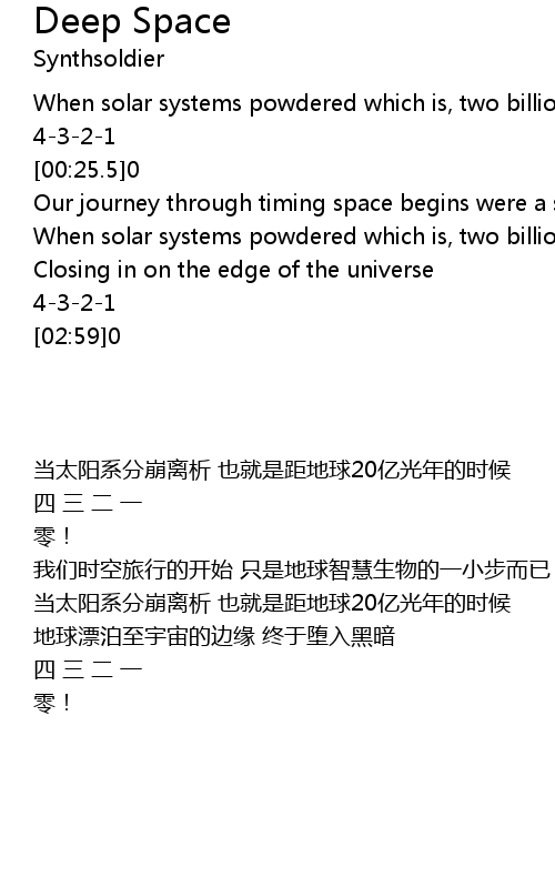 | Song | Deep Space |