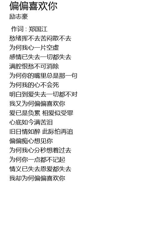 | [00:57.034] | wo you wei he pian pian xi huan ni |