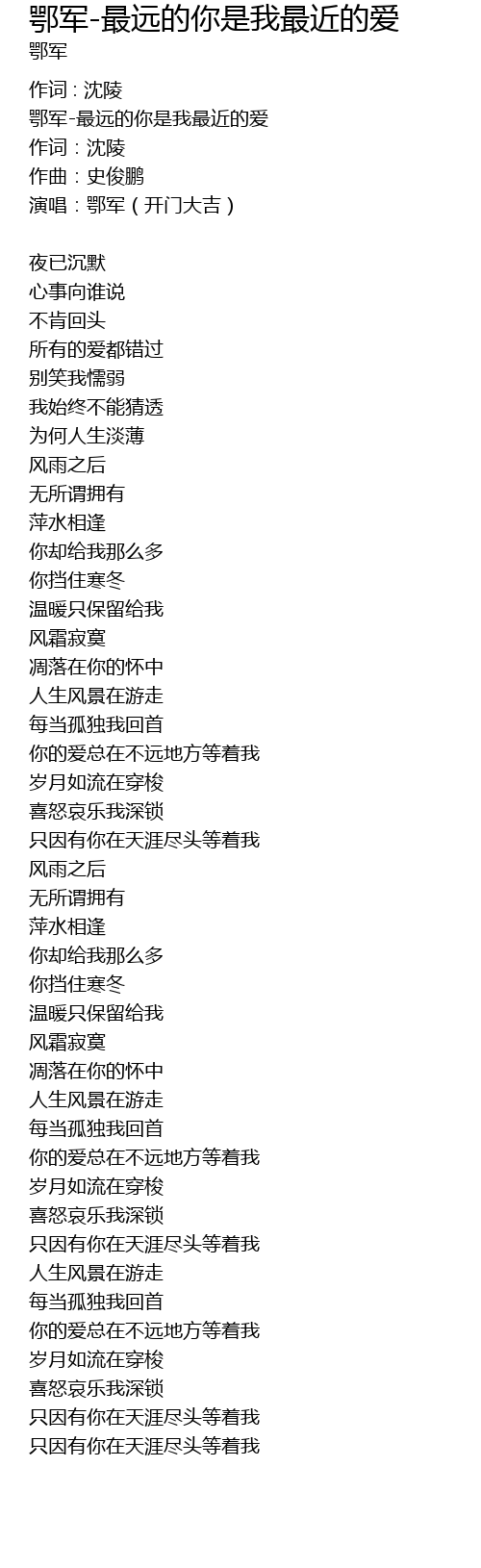 | 鄂军-最远的你是我最近的爱 | |