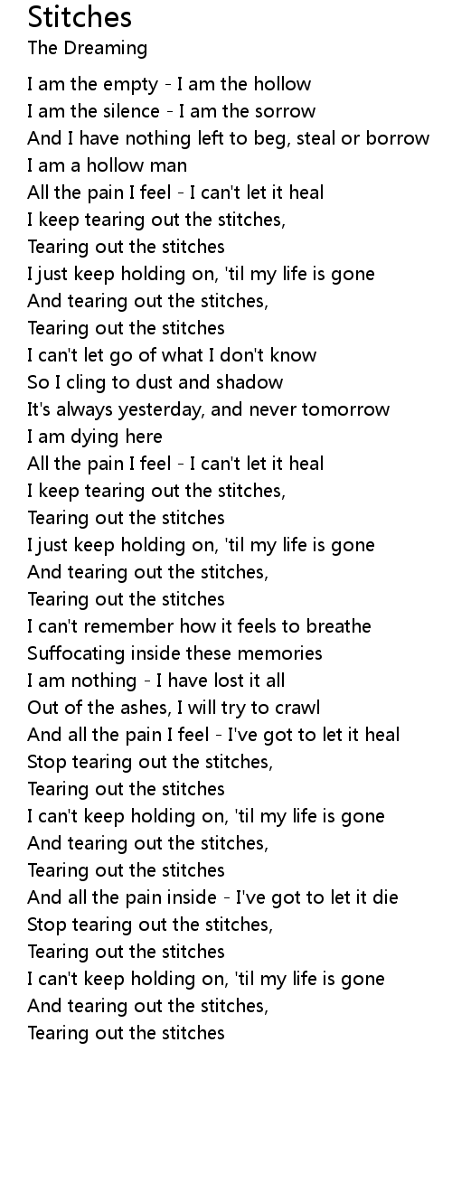 I keep tearing out the stitches, |