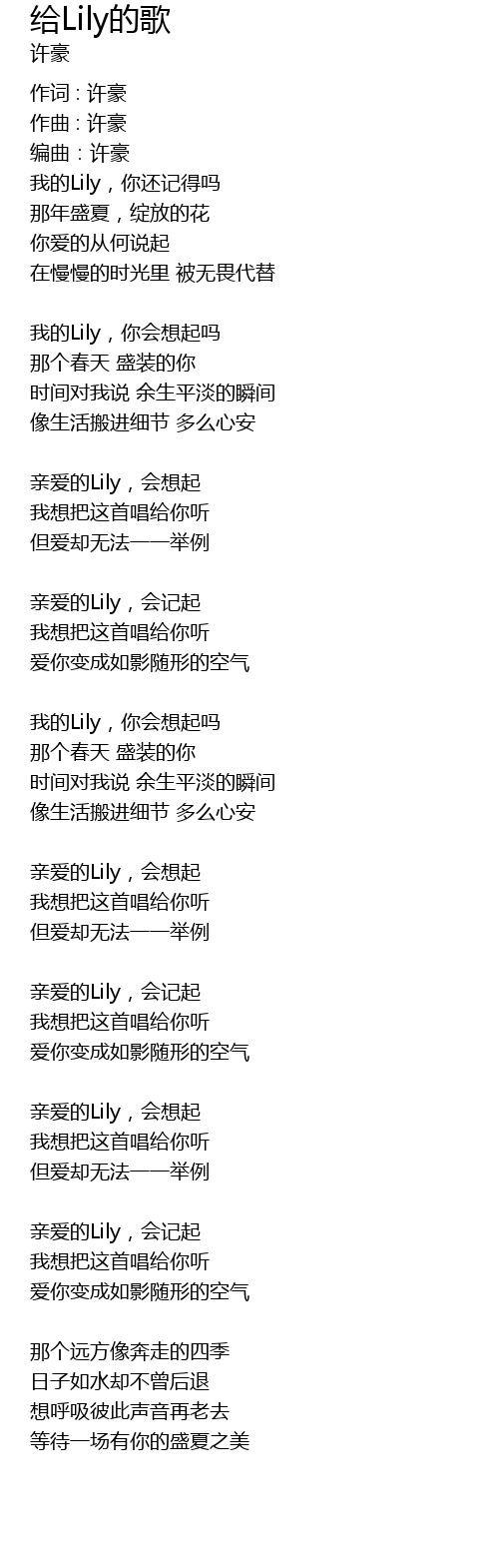 | wǒ de Lily, nǐ huì xiǎng qǐ ma | |