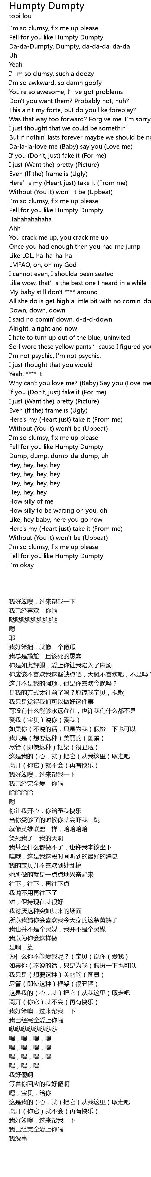 | [00:10.38] | Da-da-Dumpty, Dumpty, da-da-da, da-da |