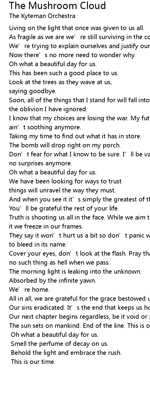 | Song | The Mushroom Cloud |