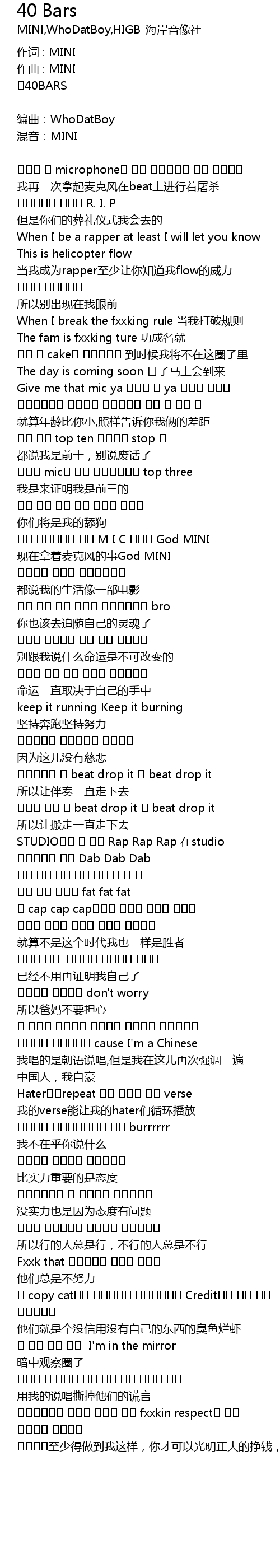| Song | 40 Bars |