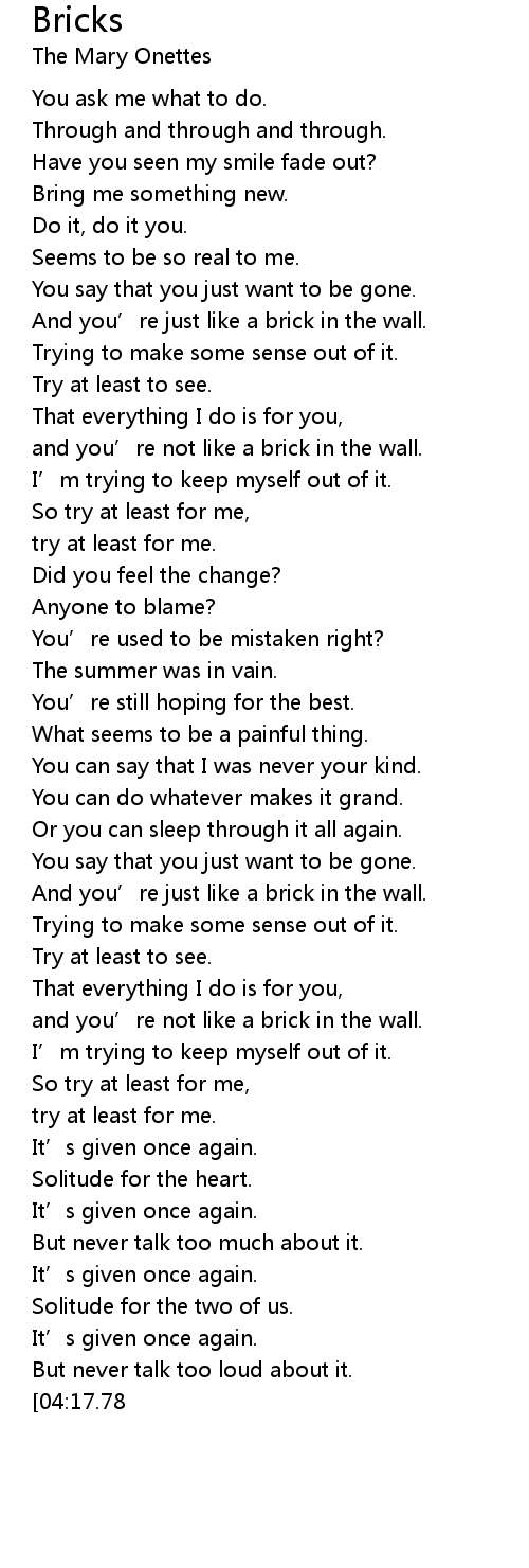 | [01:15.73] | And you' re just like a brick in the wall. |