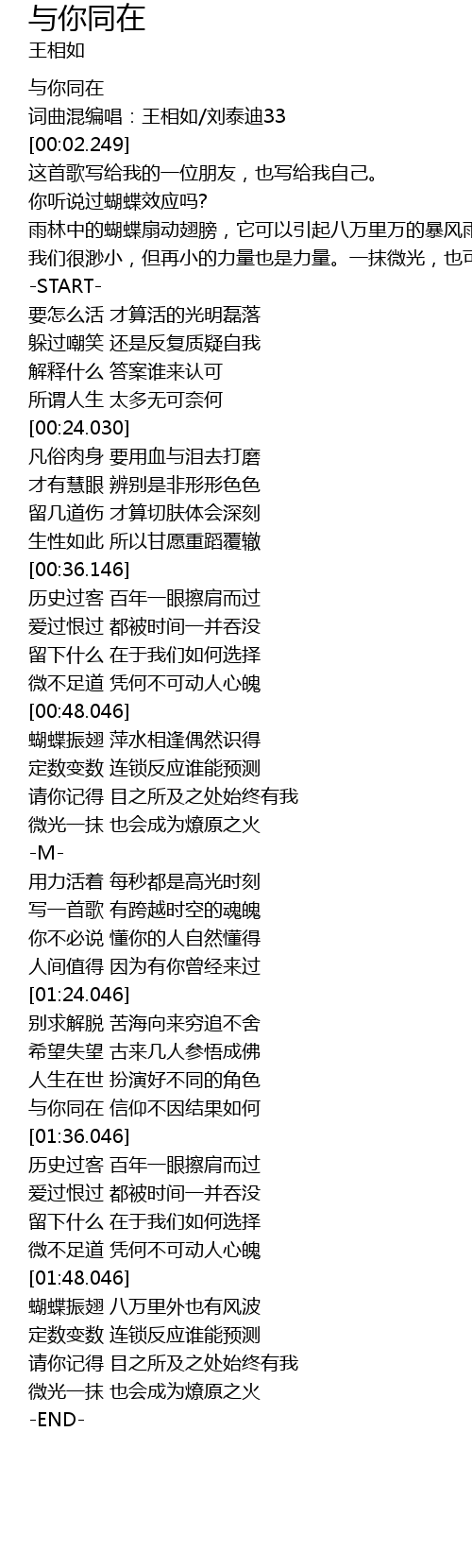 | [01:33.966] | 与你同在 信仰不因结果如何 |
