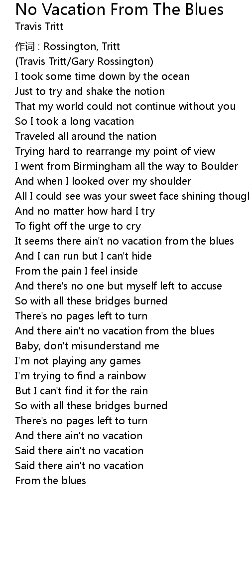 | And there ain' t no vacation from the blues | |