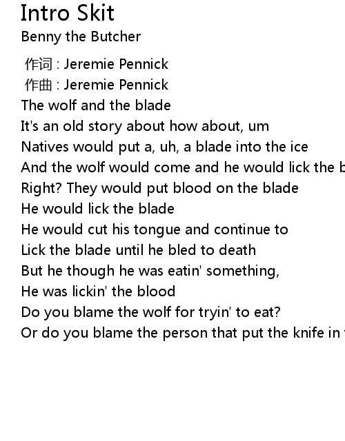 | [00:06.805] | And the wolf would come and he would lick the blade |