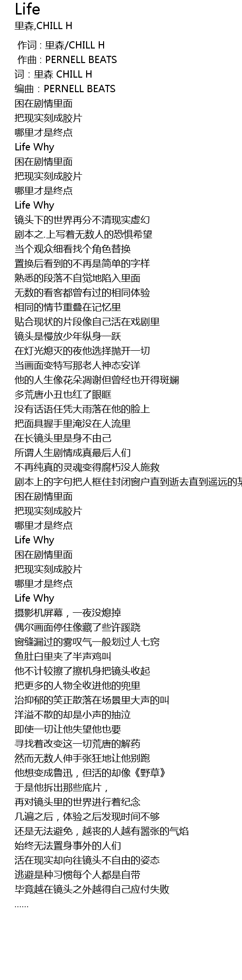 | [00:00.000] | 作词 : 里森/CHILL H |