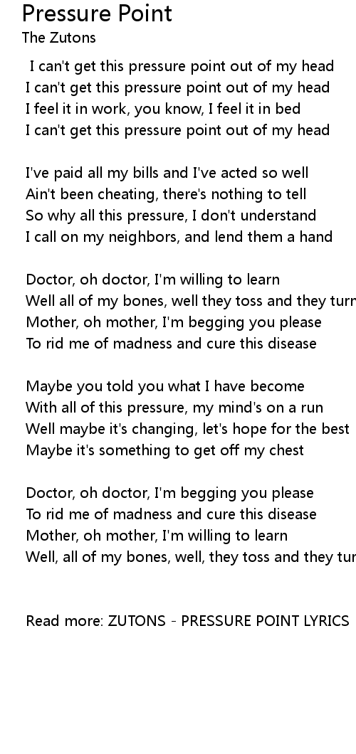 Read more: ZUTONS - PRESSURE POINT LYRICS