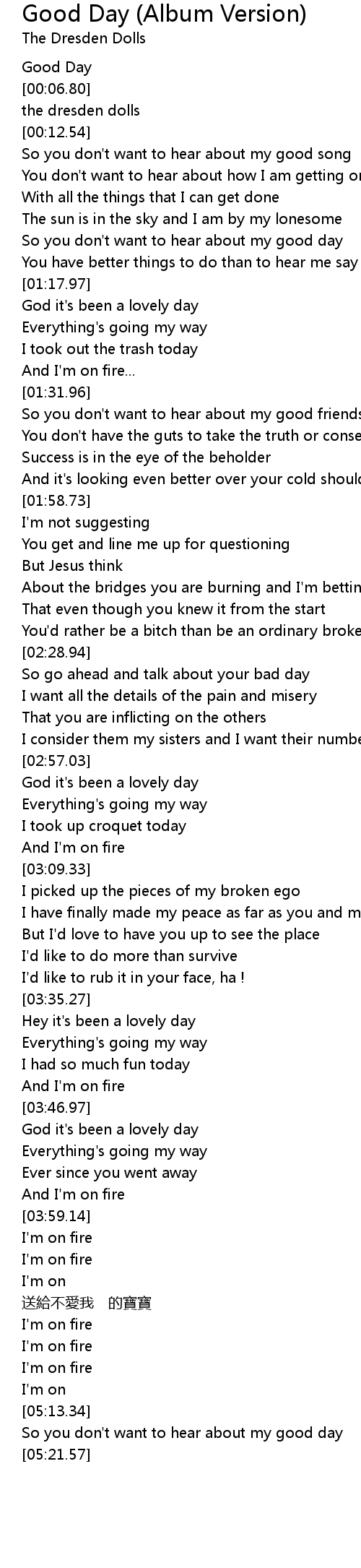 | [00:55.04] | The sun is in the sky and I am by my lonesome |