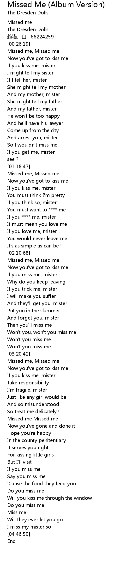 | [02:35.56] | Missed me, Missed me |