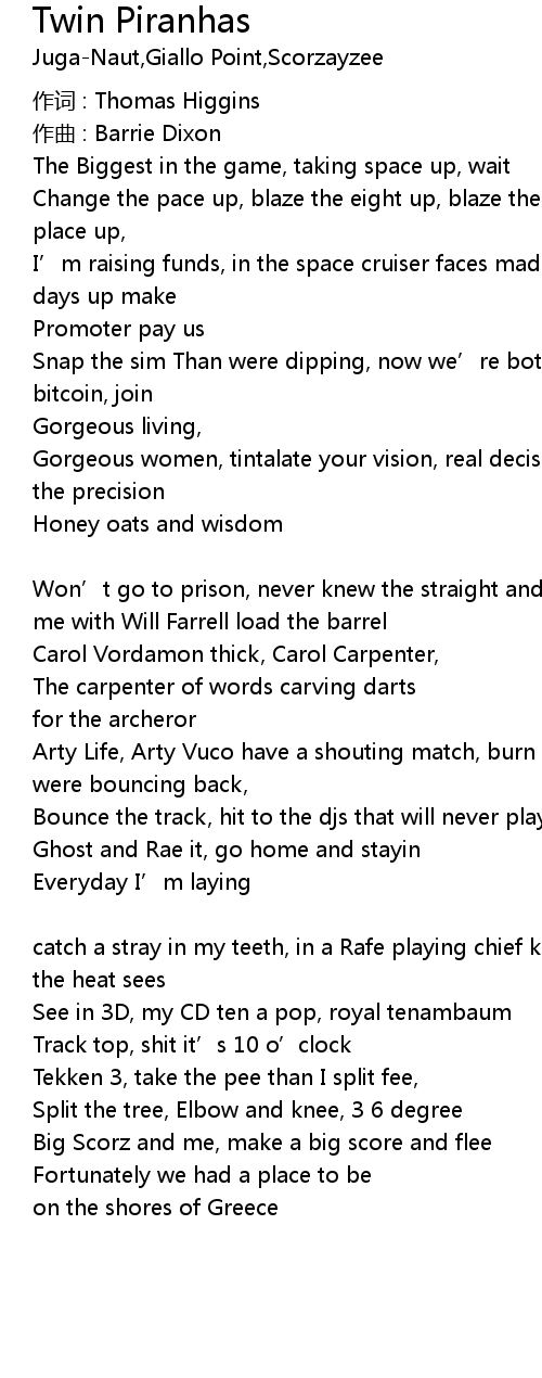 | Change the pace up, blaze the eight up, blaze the stage, twelve gauge, raise he place up, | |