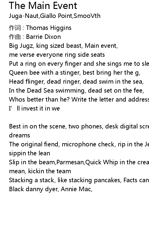 | Slip in the beam,Parmesan,Quick Whip in the cream Stripping the green, bicin the mean, kickin the team | |