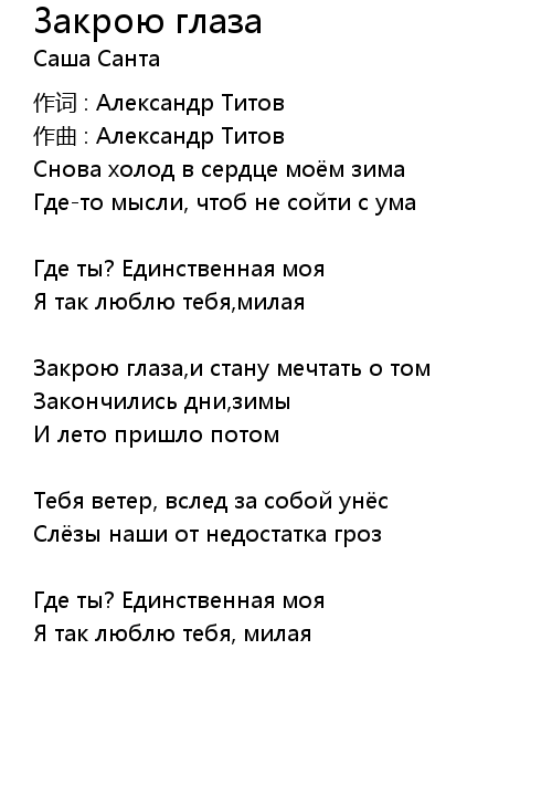 | Song | Закрою глаза |