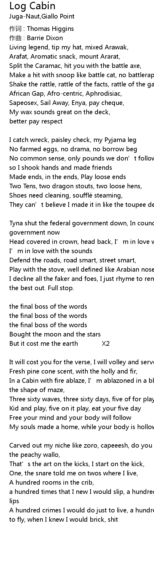 | Song | Log Cabin |