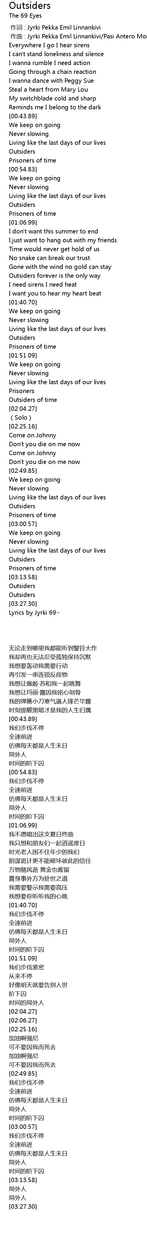 | [03:28.57] | Lyrics by Jyrki 69 |