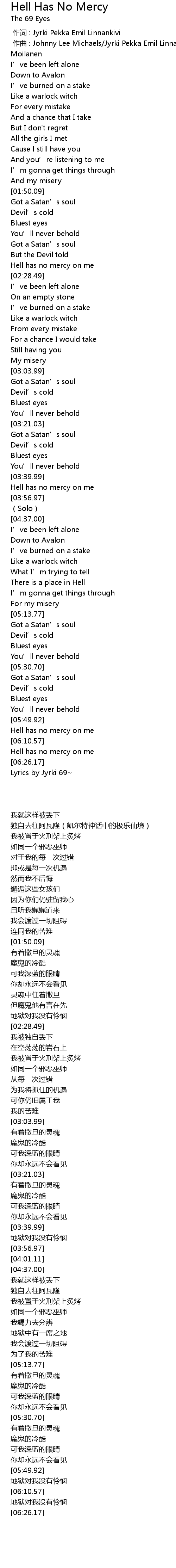 | [06:29.46] | Lyrics by Jyrki 69 |