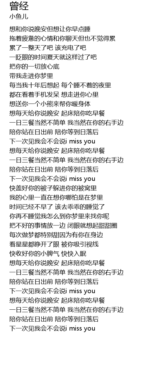 | xiǎng měi tiān gěi nǐ shuō wǎn ān qǐ chuáng péi nǐ chī zǎo cān | |
