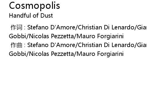 | [00:00.00-1] | zuo qu : Stefano D' Amore Christian Di Lenardo Gianluca Gobbi Nicolas Pezzetta Mauro Forgiarini |