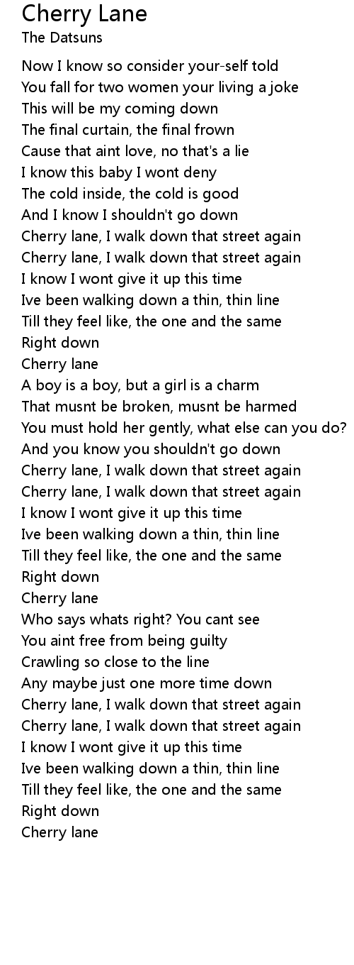 Cherry lane, I walk down that street again |