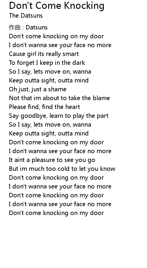 | Don' t come knocking on my door |
