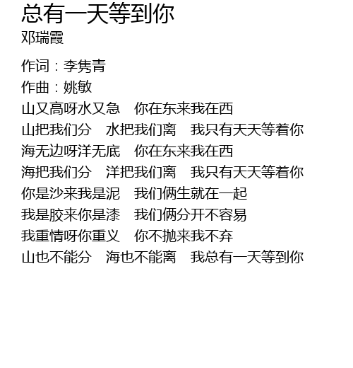 | 山把我们分 水把我们离 我只有天天等着你 | |
