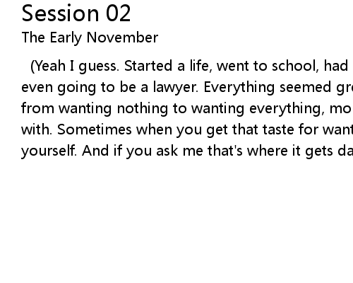 | (Yeah I guess. Started a life, went to school, had a job, got married. He was even going to be a lawyer. Everything seemed great. The only problem was he went from wanting nothing to wanting everything, more than he even knew what to do with. Sometimes when you get that taste for wanting things, you only want for yourself. And if you ask me that's where it gets dangerous.) |