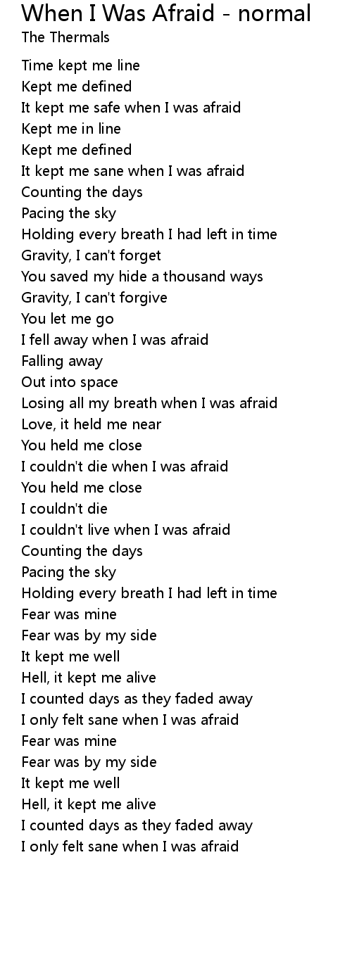 I couldn't die when I was afraid |