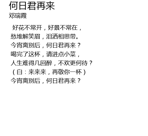 | Song | 何日君再来 |