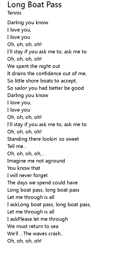 | I askLong boat pass, long boat pass, | |