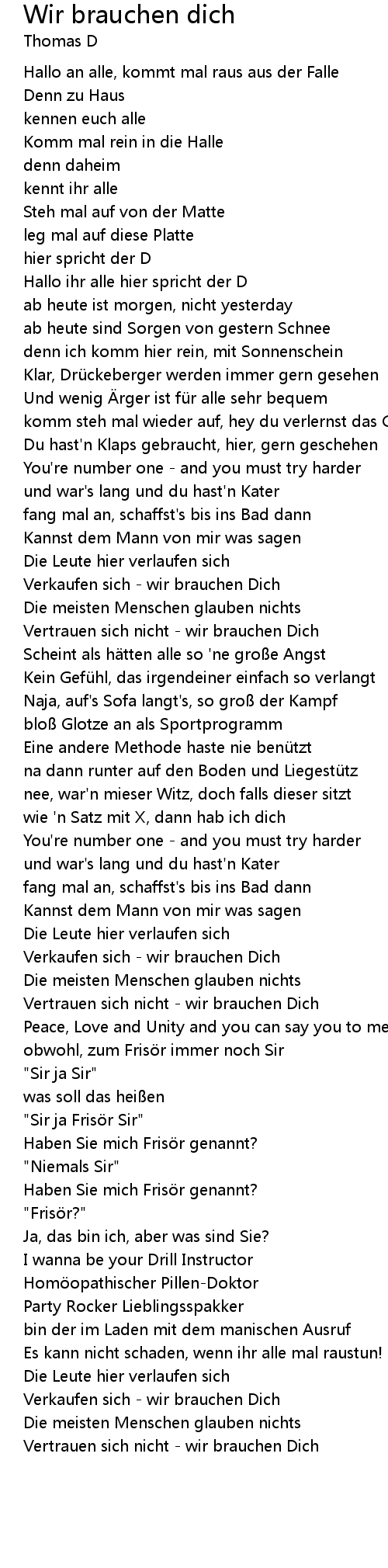 | Song | Wir brauchen dich |