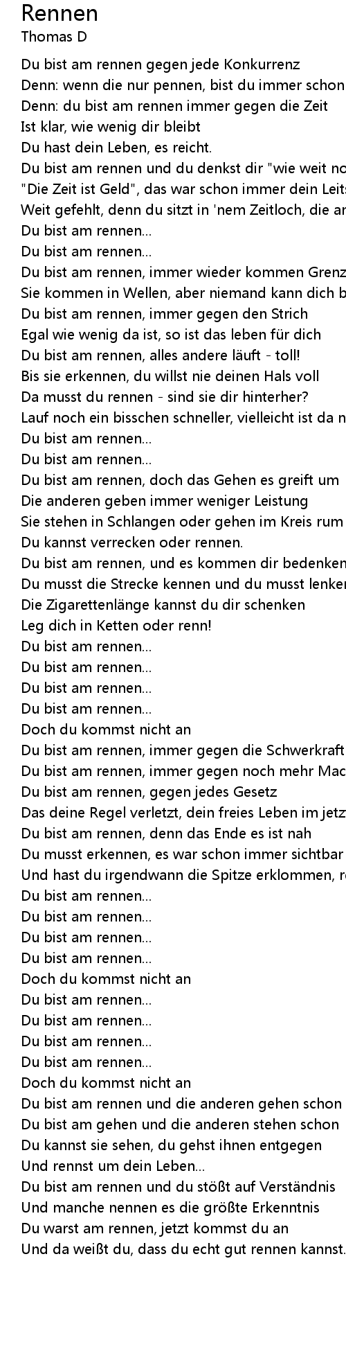 | Du warst am rennen, jetzt kommst du an | |