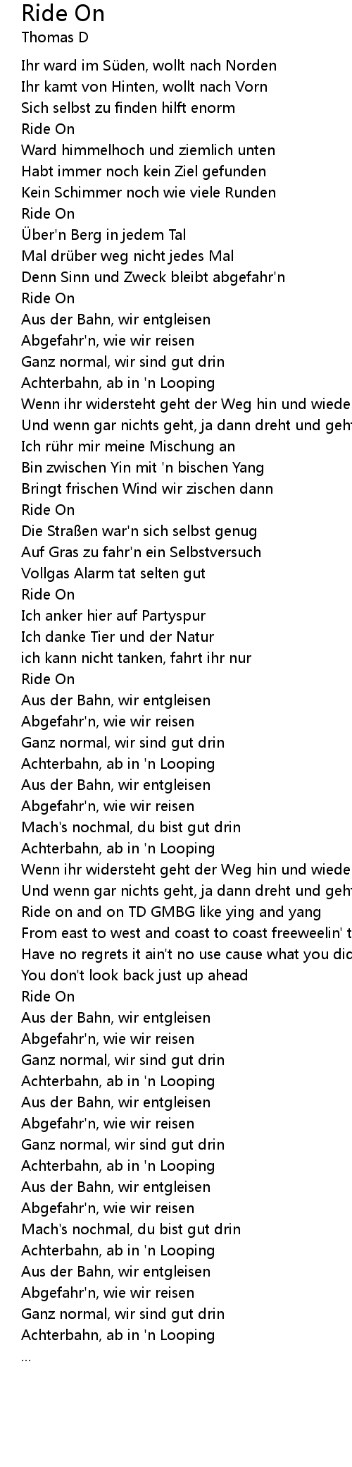 | Denn Sinn und Zweck bleibt abgefahr'n | |