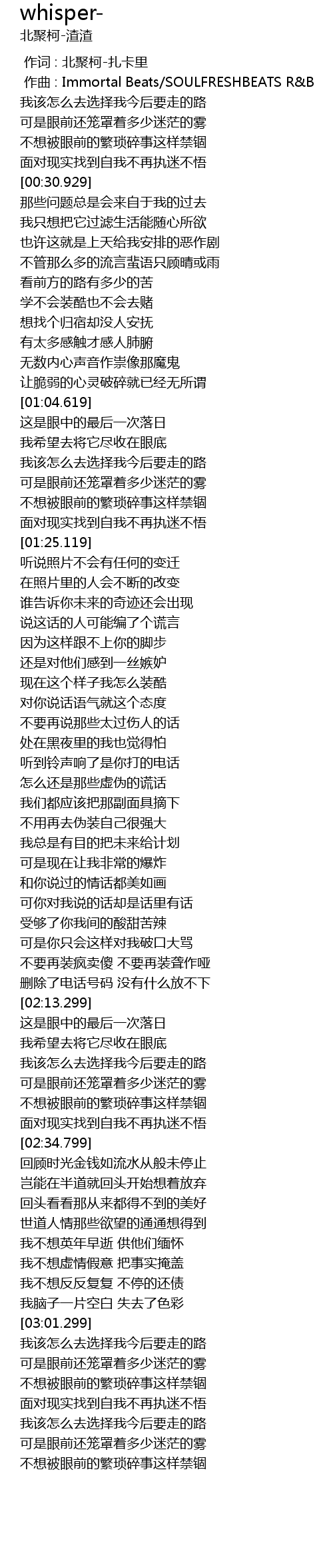 | [00:01.000] | 作曲 : Immortal Beats/SOULFRESHBEATS R&B |