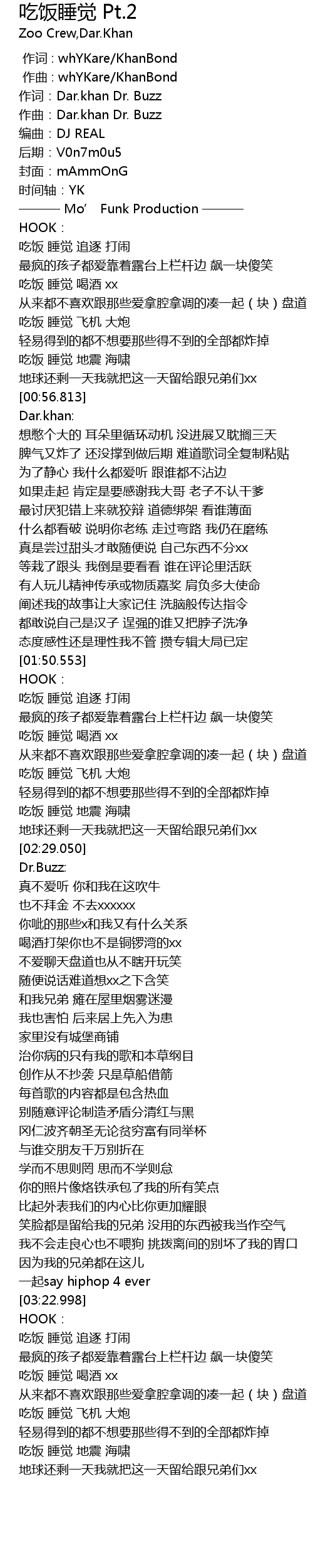| [01:56.562] | chī fàn shuì jiào zhuī zhú dǎ nào |