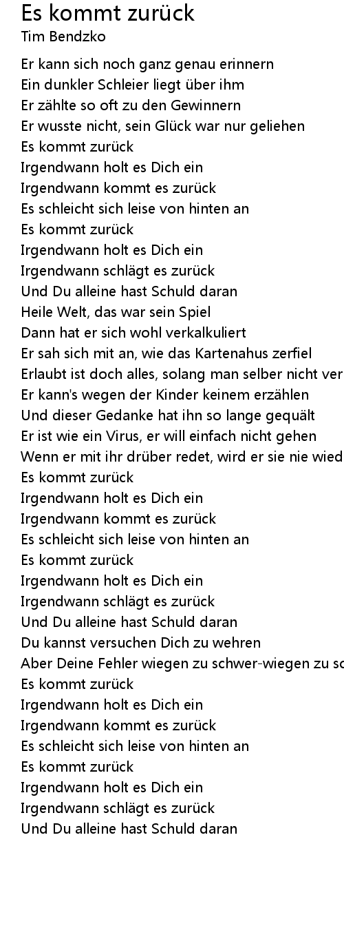 | Song | Es kommt zurück |