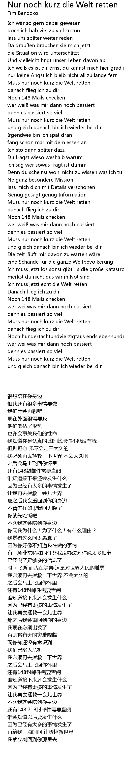 | [03:03.590] | Muss nur noch kurz die Welt retten |