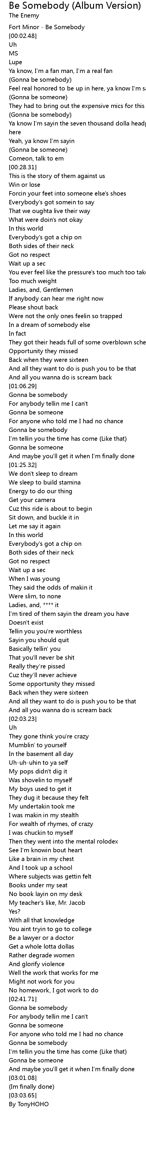 Fort Minor - Be Somebody |