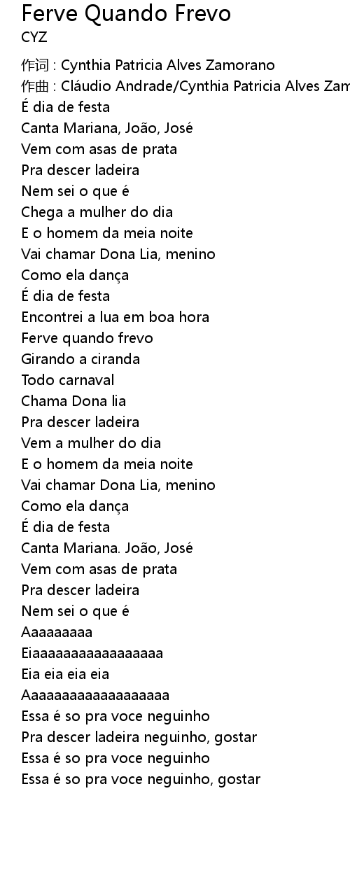 | 作词 : Cynthia Patricia Alves Zamorano | |