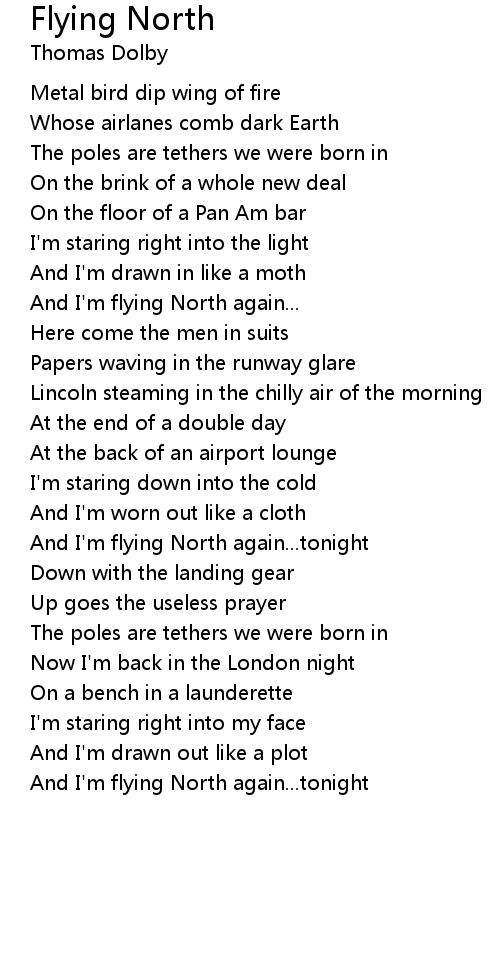 And I'm flying North again...tonight |