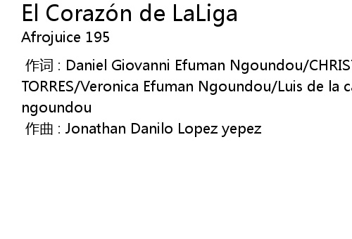 | [00:00.00-1] | 作词 : Daniel Giovanni Efuman Ngoundou/CHRISTIAN UHUNAMURE TORRES/Veronica Efuman Ngoundou/Luis de la calle Garcia/Dominique efuman ngoundou |
